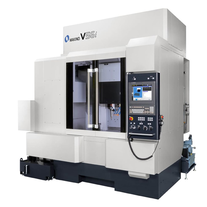 In addition, the V56i is outfitted with the Makino Professional 5 control, utilizing a Windows CE operating system to provide a stable, secure platform with reliable performance on the NC side, while providing an operator-friendly graphical user interface (GUI). This latest generation machine tool control offers large color touch-sensitive, on-screen, menu-driven applications. Icons provide “hot links“ and quick access to critical information that may be required by the operator. In addition, the new control platform provides all of the functions typical of a PC (cut, paste, copy, find, replace, etc.) that are rarely available on a machine tool control. Advanced data management technology and Makino’s next-generation Super Geometric Intelligence (SGI.4) servo control deliver the lowest cycle times achievable by reducing machining cycle times on dies, complex cavities and cores by as much as 40 percent when compared to most other control technologies.